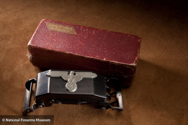 "Una hebilla de cinturón que esconde una sorpresa en forma de arma oculta. Se fabricaron allá por los años treinta para el aparato nazi. La finalidad es muy concreta, sirven para sorprender al enemigo en el momento en que este intenta desarmarte. Hay dos tipos, uno se acciona solo al aparentar que nos estamos quitando el cinturón y el otro lleva un mecanismo a modo de gatillo, es como una ultima oportunidad en caso de tener al adversario en frente apuntándonos".