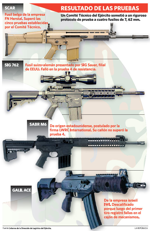 Según la emisora de televisión, las comisiones de evaluación militares recomendaron el arma presentada por la empresa belga, el fusil de asalto SCAR (Special Forces Combat Assault Rifle), a pesar de que en las pruebas experimentó reiterados fallos de funcionamiento. Por si acaso, el martilleo de partes es un procedimiento valido de correccion de tension del metal. El riel puede haber sufrido un ‘warp’ a causa del calor. Si este evento afecta a calidad del producto o si esta dentro de las fallas estadisticas validas en la industria es cuestion a determinar por el ejercito. Otros fusiles pueden tener mejores caracteristicas tensiles.