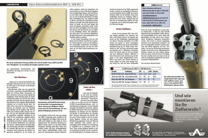Edito y Adjunto una parte del articulo dedicado a este rifle, con una prueba de precisión a 100 metros, con proyectiles de 168 grains, de la revista Alemana Caliber de junio 2006.