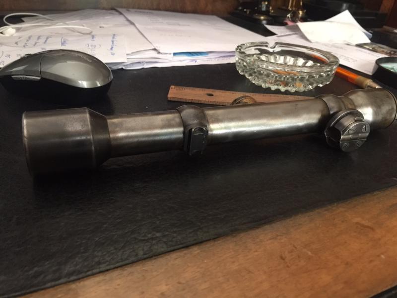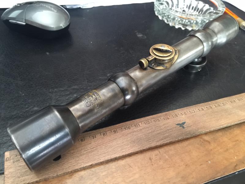 Yo buscaría otro visor, ese con la marca nedinsco no es, digamos, históricamente correcto en cuanto a la marca, el visor en sí es igual a los Zeiss que montaban para francotirador los alemanes. Nedinsco (que todavía existe) era una filial de Zeiss en Holanda y esa copia del Zielvier de 4x yo no la he visto en K98 de la 2ª GM, no creo que se montaran visores nedinsco. Probablemente con la invasión de Holanda en el 40 les pusieran a fabricar ópticas varias militares y dejaran los visores, o bien los fabricaran como Zeiss a secas. Puedes vender el Nedinsco facilmente y sacarás dinero para un visor militar original para K98, aunque encontrar uno con anillas para torretas bajas no será fácil.