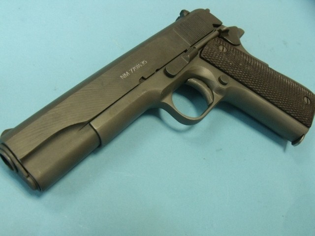 Esta es una Government Property en la que, por requerimientos de contrato, no puede haber armas de ajuste tipo National Match. Además, llevaría los marcajes de Colt, con todas sus patentes, y eso que se ve en la foto es el único marcaje de la corredera.