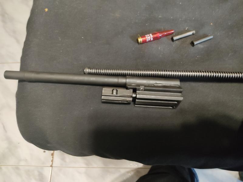 Parece que se le haya quitado algo más y tenga un poco de juego o más de un lado quE de otro.Yo cogeria la dremel y le mataría el canto(un poco redondeado) al tetón, ojo, no al tubo del cuerpo de cerrojo.Una pasadita y luego pulido y ya contarás.