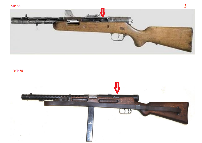 Aunque no aporto fotos es fácil de apreciar en cualquier publicación que el cajón de mecanismos por donde discurre el cierre está completamente aislado del exterior en las dos armas. El MP 35 se arma con una palanca tipo de cerrojo de fusil y en el MP 38 la palanca de armado no acompaña al cierre en su desplazamiento. La idea para las dos es aislar el cierre y el tubo por donde se desplaza de los elementos externos que igualmente encontramos en el subfusil Suomi finlandés.