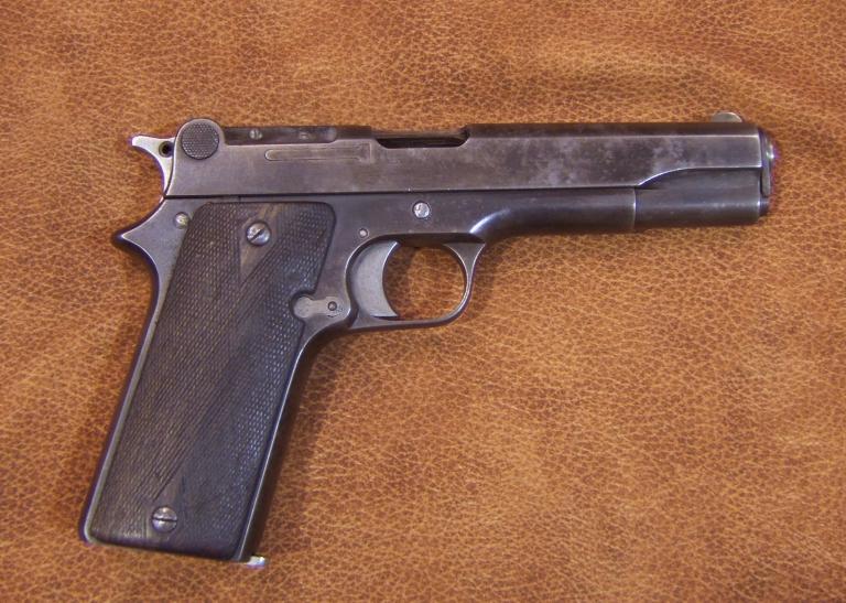 A mi personalmente me recuerda mucho a la Colt M1911, aunque se de sobra que no es ese modelo, ya que la pistola de la película usa el calibre 9 Largo (9x23 sino me equivoco), y la Colt M1911 usa el .45 ACP.