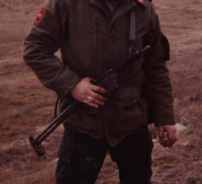 La foto es de 1981, subfusil utilizado por la Division Acorazada Brunete.
