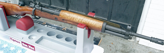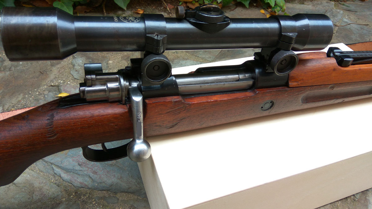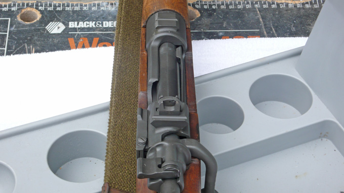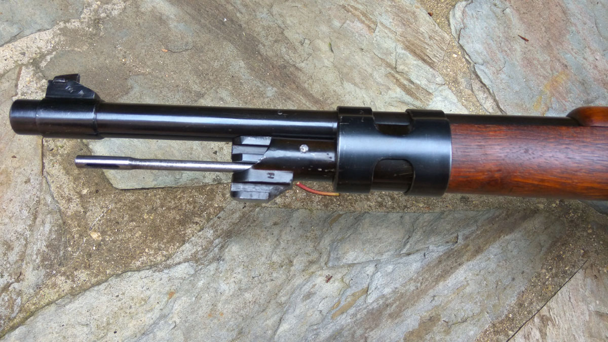 Entonces tropezaría con el visor. Casi todos los fusiles a los que se les acoplaba un visor se les curvaba la palanca para evitar precisamente éso. Los de la versión normal o estandar sí que lo llevaban recto.