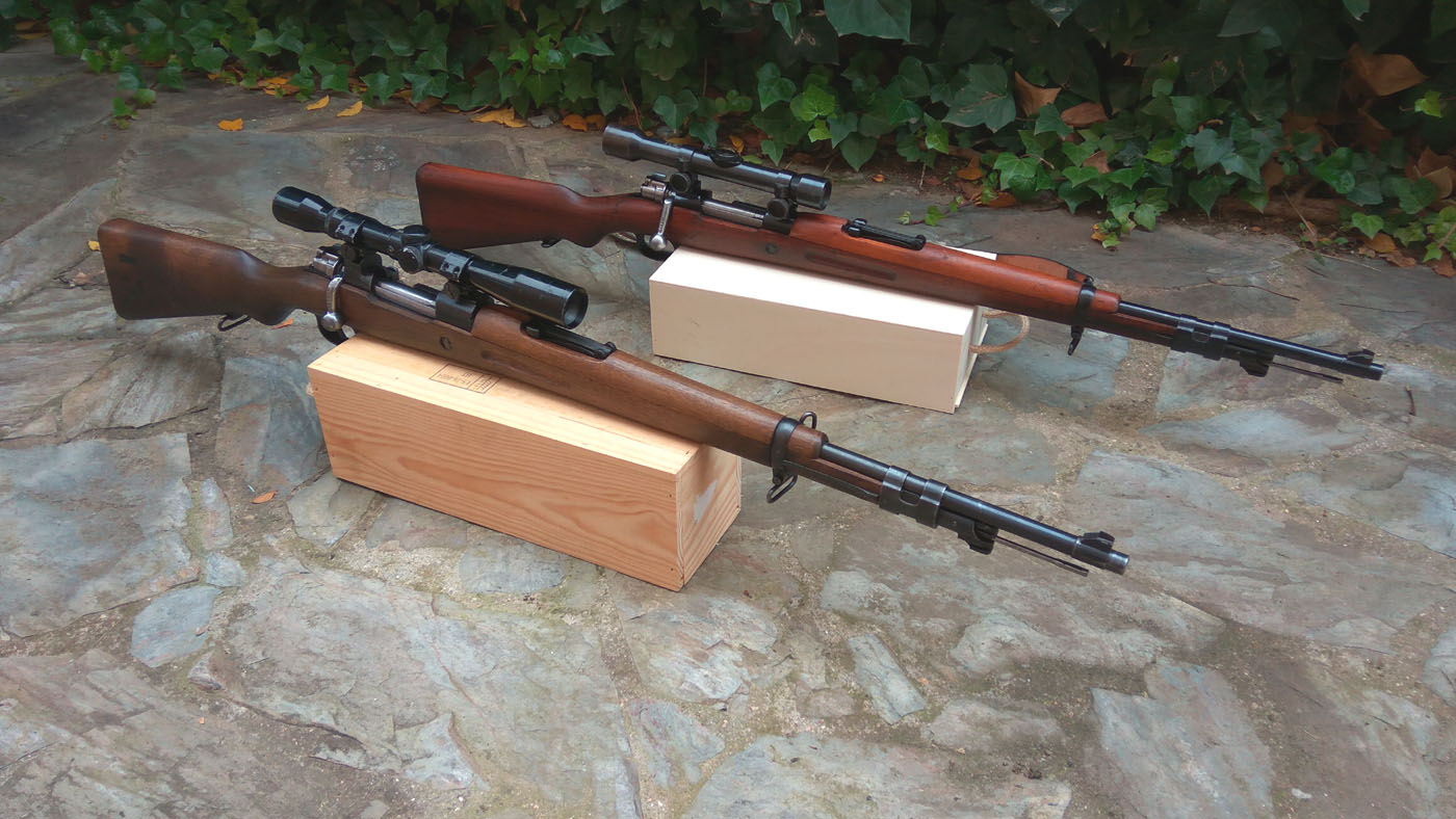 Uno es del tipo 1, con visor TPYCEA 4x32 (copia del Zeiss Zielvier alemán) y montaje correspondiente. El otro es del tipo 3, con bases soldadas al cajón, anillas japonesas y visor también japonés, de 10x32. Hay otro tipo, el tipo 2, que lleva bases grandes cuadradas, soldadas y atornilladas al cajón con anillas japonesas y visor también japonés igual que el tipo 3, de marca “EIKOW” o “MARINE”.