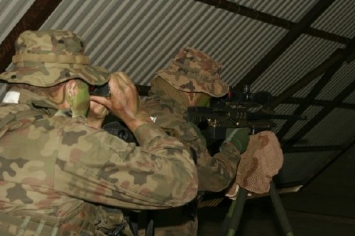 Tiradores polacos en un entrenamiento de tiro urbano. La posición esta centralizada en la habitación. Lo que les da una cuota extra de encubrimiento y seguridad. El fusil esta correctamente asentado sobre el trípode. La posición indica un disparo lejano (Angulo del fusil) o por el contrario un muy cercano a otro edificio.