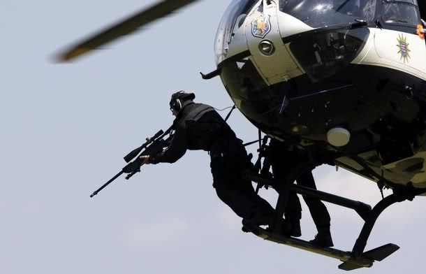 la altura y velocidad a la que van esos "cazadores" no es precisamente la de un tirador helitrasportado. De todos modos ya se ha dicho, mejor esto para tener un tirador con poder disuasorio (por ejemplo):