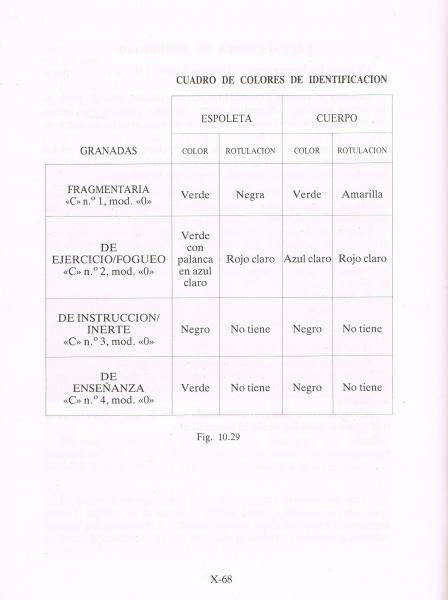 Como contribución a este interesante hilo, añado un cuadro extraído del Manual del Soldado de Infantería de Marina editado en 1986. Va referido a las granadas Calderón.