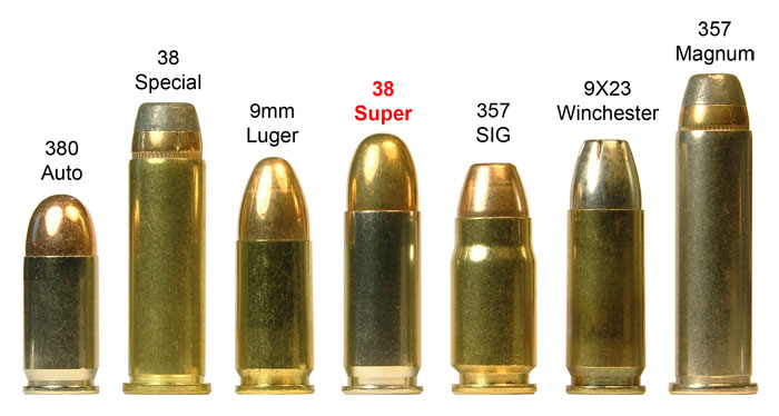 Otra cosa bien distinta, en hablar de los 9 mm pero en otras "formas": 9mm Largo, 9mm Bergman, .38 Auto y 38 Super Auto, todos son de 9x23 mm aunque en general son diferentes. Y hoy dia, el 9X23 Winchester es perfectamente comparable a un 357 magnum, ya que de fabrica genera mas de 1400 pies por segundo, eso son mas de 450 m/s.