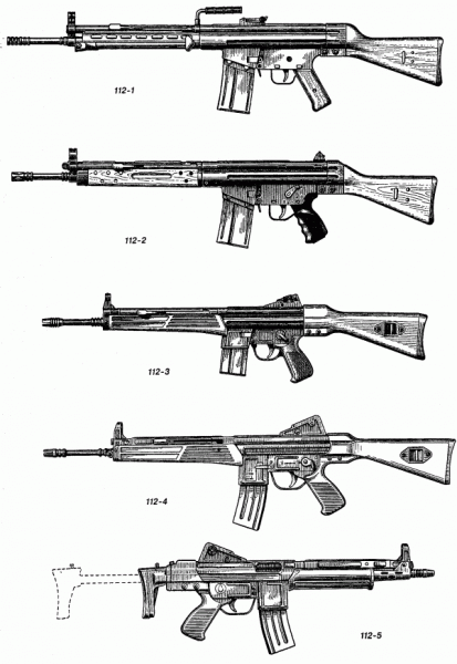 guardamanos largo , alza tipo hk , guardamontes abatible y cargadores norma stanag , tipo m-16 ....por supuesto calibre 5,56 mm