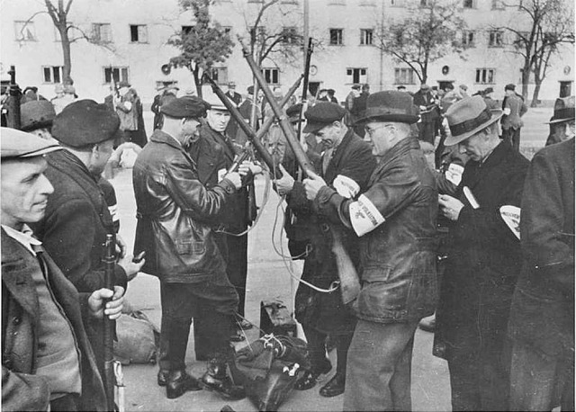 Y ahora algunas fotosgrafías históricas curiosas que acreditan el uso del Steyr M95 de cañón largo por parte del Volkssturm durante las últimas fases de la Segunda Guerra Mundial: