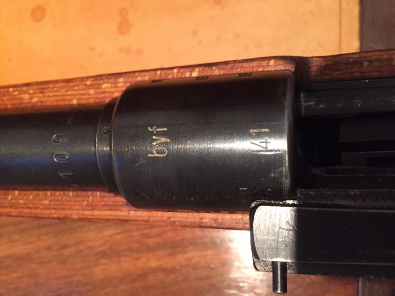 Como ya sabrás, el código es de Mauser Werke Oberndorf a/N de 1.941. En ese año y en esa factoría se montaron fusiles con la montura lateral corta, aunque la que se ve en las fotos que has subido es de tipo 3 con la palanca de fijación, y ese tipo fue una mejora sobre los tipos anteriores usada a partir de 1.943 en adelante, por lo que sé. Siendo el fusil de 1.941, no corresponde ese tipo. El visor Ajack que lleva sí se usó con esa montura.