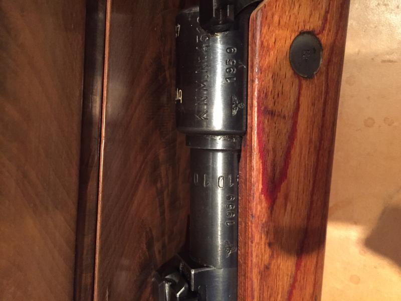 Buenas tardes, interesantísimo tema el aquí presente, hace casi 3 años que compre un captura rusa del 41 números coincidentes en culata y cañón,resto coincidentes a "láser" y sin la X marcada ni ningún punzón borrado, base sobre la cual he ido adquiriendo poco a poco distintas piezas relacionadas con los kar98k, un poco síndrome de Diógenes, hasta que me decidí hace poco a llevarlo a una armeria de confianza para colocarle un raíl corto tipo 1( réplica) y un visor zielvier original, esta obra la medite durante largo tiempo y si finalmente me decidí fue porque era una captura rusa, desde luego si hubiera sido uno impoluto del 35 ni se me hubiera pasado por la cabeza hacerle taladro alguno.