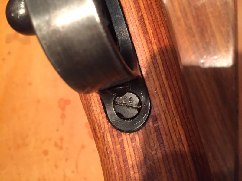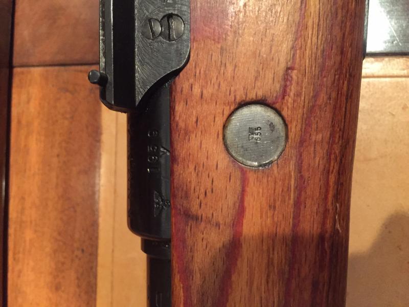 Luego marcaban la famosa X (Que tengo entendido, aunque no lo puedo asegurar, que simboliza dos mosin cruzados, insignia de pasar por arsenal). Tras esto repavonaban y montaban las armas completas con piezas ya mezcladas de otros K98k y comprobaban que el arma mecanizaba correctamente. Entonces grababan con lápiz eléctrico los números del cajón-cañón original en las otras piezas principales y culata para hacerlos coincidir. Se grababan a mano con lápiz eléctrico, no láser, los primeros láser aparecen en los años 60. Aplicaban un barniz de goma laca en la culata a brochazos y aplicaban grasa cerada tipo cosmoline para conservación. Pero había veces que por prisa, por despiste o lo que sea, no borraban las esvásticas o no marcaban la X o ninguna de las dos.