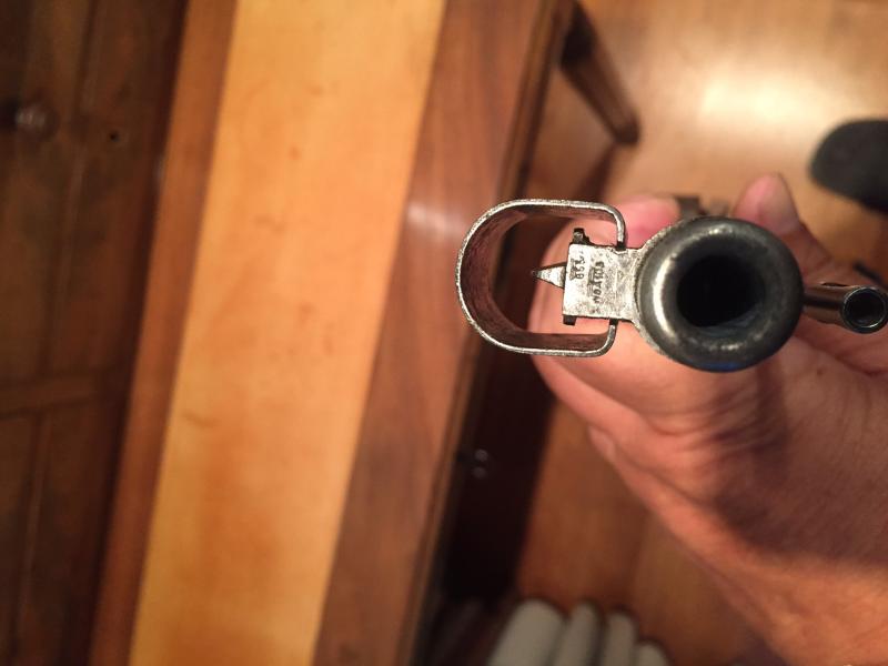 Por un lado las marcas en el tubo del visor Ajack, bajo la torreta de ajuste, que muestran las huellas de un montaje tipo suhler soldado. Por otro el exceso de "gallinas", solían ser más sobrios con los marcajes,normalmente llevaban un número de dos cifras, (a veces el número de serie completo), y el código de fabricante, pero sólo una vez. Pero esto no es una ciencia exacta, aunque las marcas de antiguas anillas soldadas sí me da qué pensar.