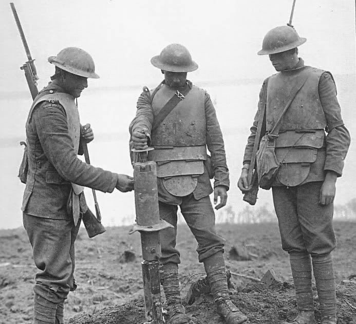 Las corazas usadas o escudos en la primera guerra mundial como mucho desviaban una bala, cosa que con el calibre 8 mm mauser era difícil. Aunque a la practica debían ser tan pesados todos los escudos, que poco a poco, en el primer año de la guerra se dejaron. Y empezó realmente la "trinchera" los sacos de tierra, troncos... Pero observadores, tiradores y otros muchos que estaban expuestos seguían usando.