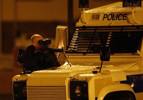 Tiradores británicos en posición, usando un periscopio