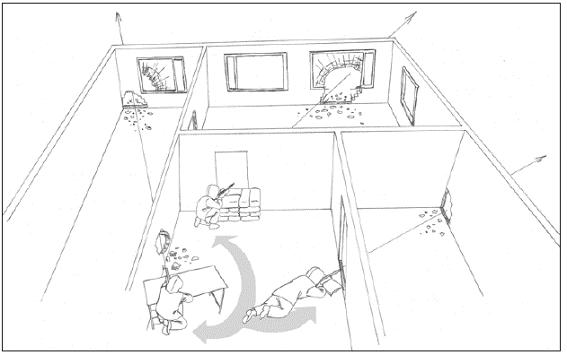 gratifico del manual de tirador finlandes, muestra como utilizar los huecos de artillería para paquear, y permanecer dentro de la vivienda