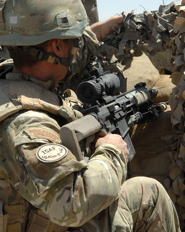 El 5,56x45 en Afganistán es un calibre inválido y poco eficaz, en mi opinión seria mas capaz y efectivo el 7,62x51 para todo corta-media y larga distancia.