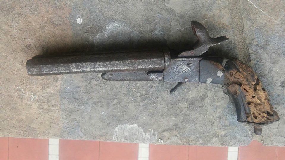 Si no ando despistado, eso es una pistola de Garrucha de cartuchos lefaucheux.