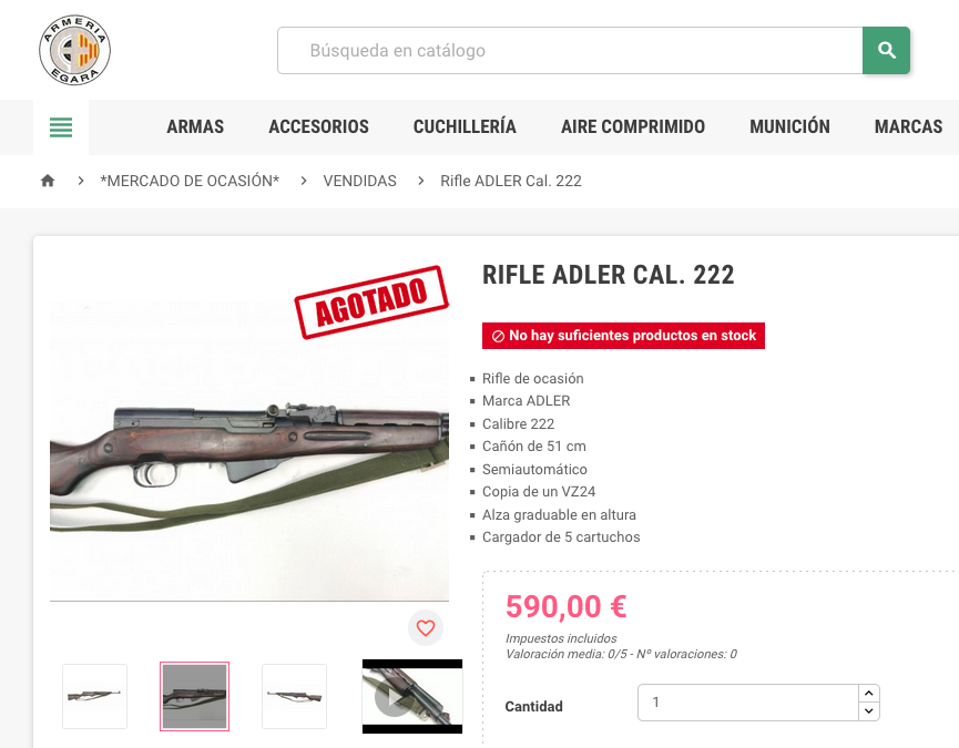 Negativo. No es un VZ24 sino un SKS soviético de los producidos en Tula. Y ese anuncio debe ser del pleistoceno porque ahora uno de esos ni de coña se vende por 500 y pico.