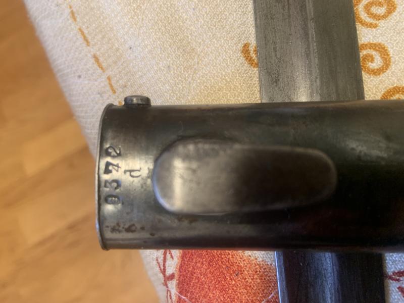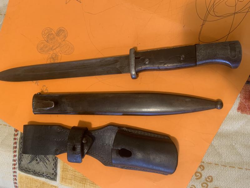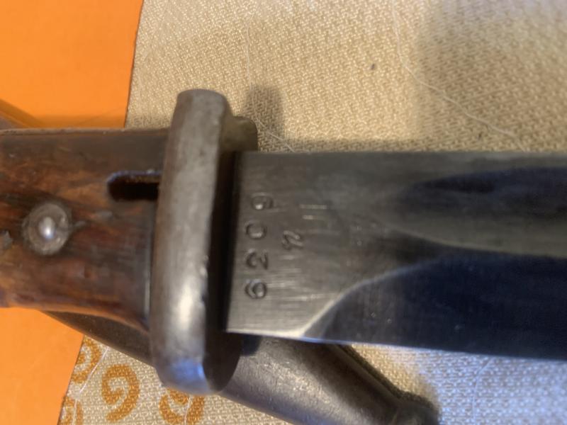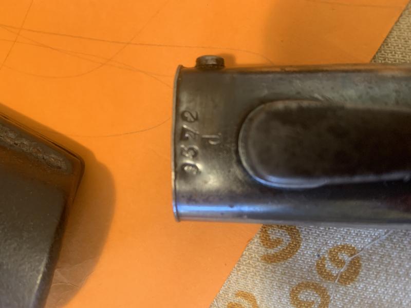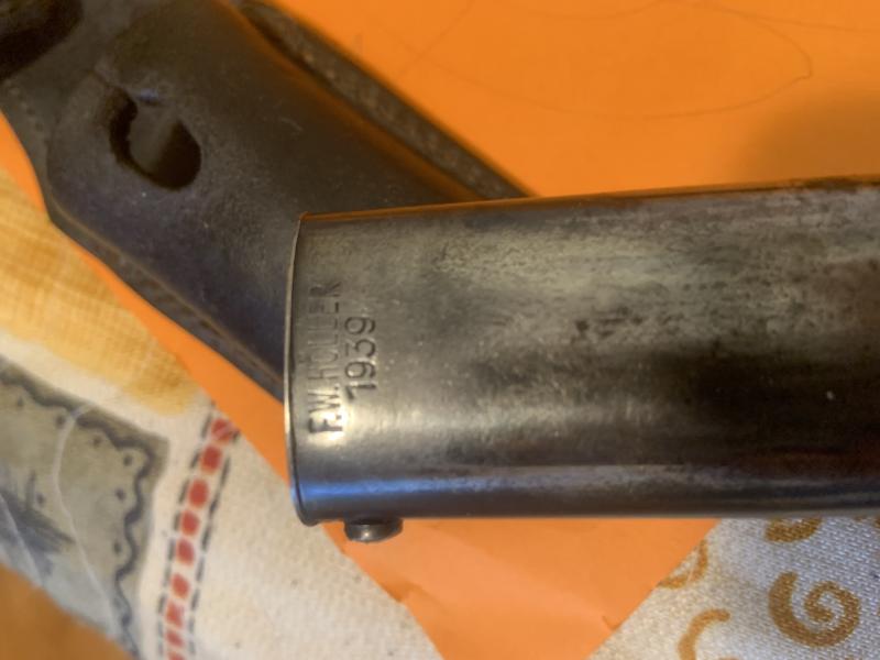 Tengo una bayoneta del k98 en buen estado y núm no coincidentes. Hasta aquí todo bien. El problema es poder conocer su historia ya que hay marcajes que no consigo identificar y marcajes de números de serie remarcados unos encima los otros. Por eso ruego la ayuda de vosotros.