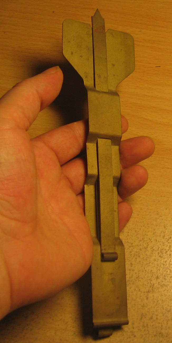 Me temo Ribetano que estás confundido, si te fijas en la parte inferior lleva grabado un "emblema o escudo" lo que me da a pensar que es un útil de pequeñas dimensiones, por lo que descartaría que fuese un blanco, tal y como sugieres. Calculo a juzgar por dicho emblema que sea de dimensiones reducidas, algo como para ser manejado por una sola mano, tamaño bolígrafo más o menos.