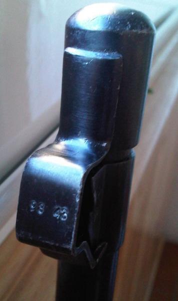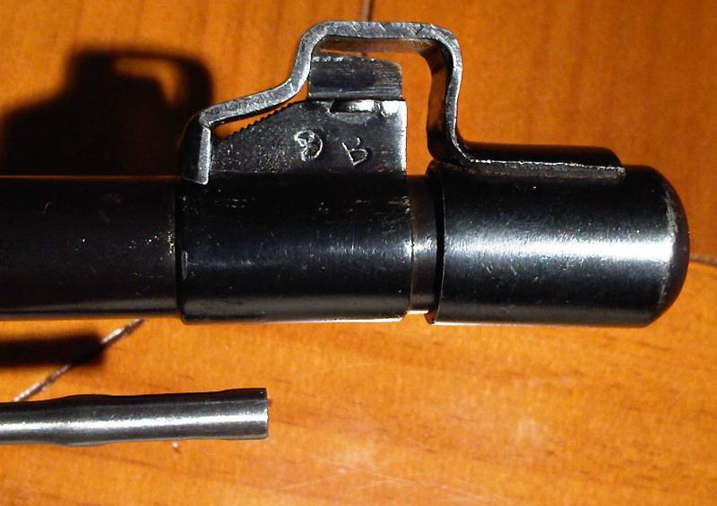 He conseguido un tapabocas y protector de punto original para este rifle, os pongo fotos porque las condiciones iniciales no eran las correctas (Foto 1) y ha habido que retrabajarlo un poco (foto 2) :mrgreen: , finalmente me ha gustado tanto que le he estampado el modelo del Mauser "98/43" :lol: .