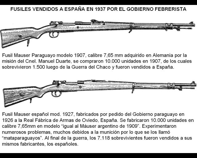 Estimados Compañeros, luego de la Guerra del Chaco (entre Paraguay y Bolivia, 1932 - 1935). El Gobierno de mi pais vendio muchos excedentes a España. Por decreto-ley 8.406 del 15 de enero de 1937, firmado por todo el gabinete del paraguay, se establece que: "es una partida de material bélico de las existencias del parque de guerra y considerando que este material no será utilizado y por consiguiente su venta no perjudicará a la defensa nacional...".