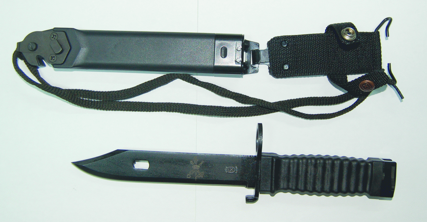 Las pestañas de engarce, a las que hace alusión Ermitanio, imagino que serán las del extremo del puño, (una a cada lado) que vienen a sustituir al botón que tienen las bayonetas tradicionales y que sirven para soltarla del fusil.