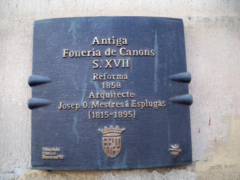 El pasado mes estuve en Barcelona (Voy todos los años por esas fechas) y casualmente me compré en el mercado de San Antonio un libro sobre armas antiguas. En el mismo hacían referencia a un lugar por el que había pasado muchas veces y nunca me había fijado pese a "tener placa"; está al final de La Rambla, justo al lado del monumento a Colón y en otro tiempo fue una fundición de cañones (De artillería)