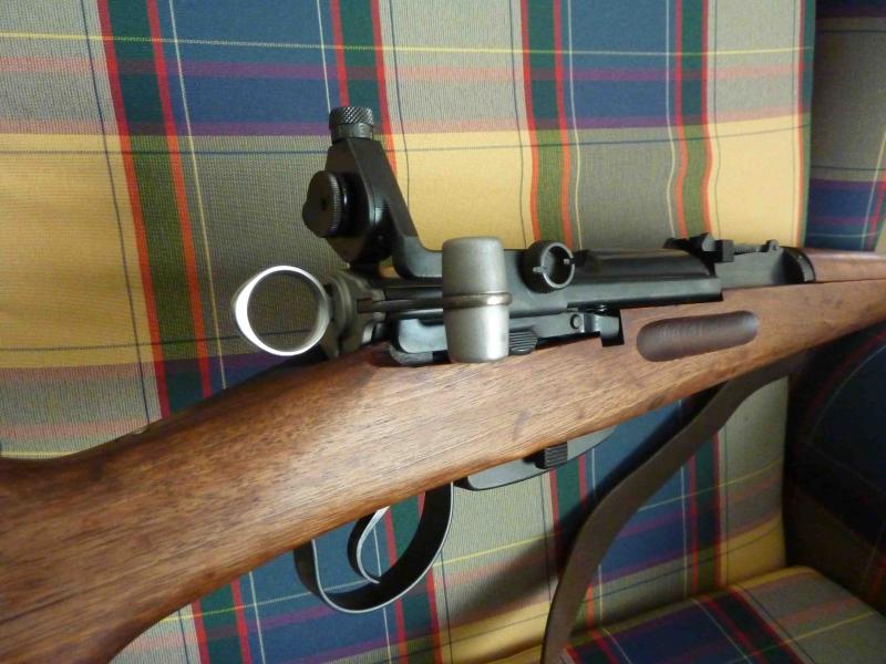 Hola a todos. Subo fotos de mi nuevo K31 con el diópter y la carrillera de cuero instalados. Por la numeración está fabricado en 1943 aunque parece estar totalmente restaurado de arsenal (lo compré ya en este estado). El cañón está absolutamente perfecto y el resto, pues juzgad vosotros mismos. Con munición comercial PVRI no se sale del negro a 100 metros tirando con el diópter instalado, sin apoyo ni uso de correa.