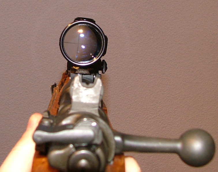 Retirando el visor que se monta en un rail Weaver hecho a medida, se pueden seguir cogiendo las miras originales. El visor es de 4 aumentos.