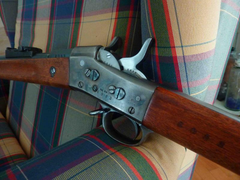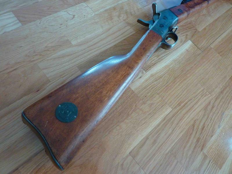 Os presento el último rifle incorporado a mi colección. Se trata de un Rolling Block de los fabricados en Suecia para el ejército sueco. Estos rifles se entregaron originalmente en calibre 12,17x42R de pólvora negra y fuego anular. Posteriormente, fueron adaptados al 12,17x44R también de pólvora negra, pero ya en fuego central. Finalmente, a partir de 1889 comienza la conversión al 8x58R, cartucho también usado por el fusil Krag y ya con la posibilidad de usar la pólvora sin humo. En esta última conversión, el bloque de cierre se somete a un tratamiento de refuerzo térmico (de ahí los restos de marmolado).