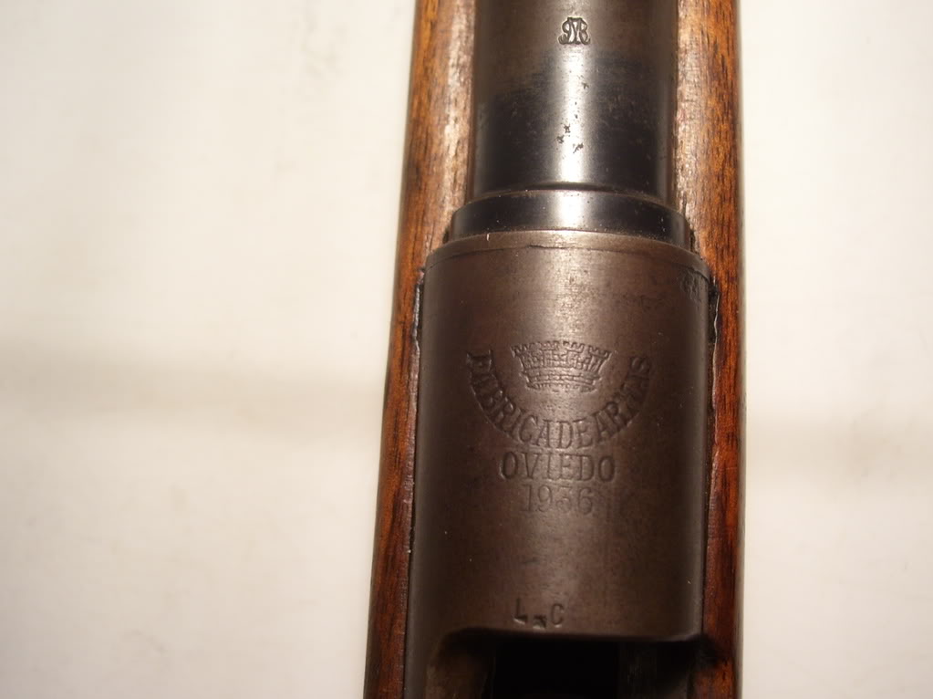Pues parece ser que se trata de las iniciales de Loewe carbine, serian culatas compradas para recambios o excedentes en los años treinta, segun me ha comentado un compañero que lo pregunto en un foro americano, yo acabo de encontrar otra carabina corta con el mismo marcaje, siempre que sea en la madera esta teoría estaría bien, pero sigo preguntando por el de la acción, aunque podría ser tambien que loewe al dejar de fabricar ese modelo vendiera estos excedentes a Oviedo que aun fabricaba el modelo 93 en esas fechas, aun habiendo fabricado ya para pedidos extrangeros acciones 98, pero como es sabido en España no fue adoptado hasta 1943 con el modelo coruña.