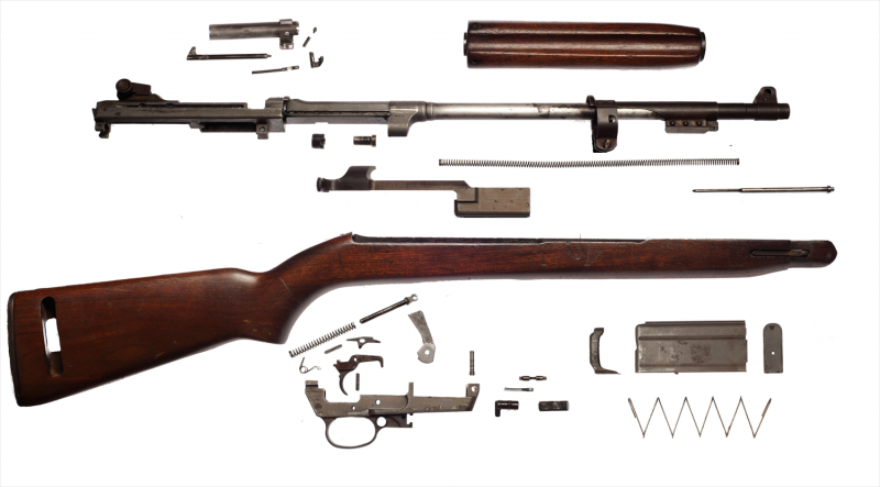 Sin ánimo de entrar en polémicas con nadie, me temo que el compañero Josepsierra, ha puesto una lámina de una vista explosiva de un arma que se parece mucho a la M1, pero que no lo es. Yo diría que la imágen es de un rifle de la familia M14. Me baso (entre otras cosas) en la palanca de montar que va unida en la M1 a una cámara de tipo paralelepípedo (como se ve en la foto de un poco mas abajo), no es la que sale en la imágen. El alza, no es la de la M1, no se regula en altura como la de la imágen (deslizándose entre las orejetas gracias a una cremallera, accionada por una de las roscas que hay en el alza), sino que se mueve sobre una lámina desplazándola el tirador.