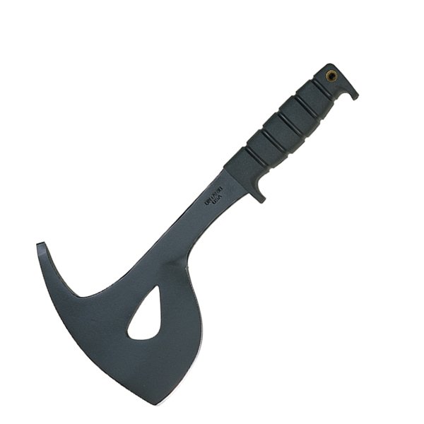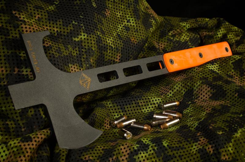 yo las veo más como herramienta que para defensa, si te falla el fusil usas la pistola y si lo tienes muy cerca y no puedes usar la pistola pues el cuchillo, pero el hacha a lo vikingo , no lo veo táctico, Ahora para romper una puerta, ventana, o cortar un tronco, si que tiene más sentido y utilidad.