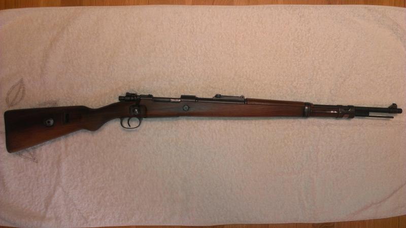 DATO IMPORTANTE: ESTE FUSIL FUE FABRICADO EN LA EPOCA JUSTO ANTES DE QUE EXPLOTARA LA SEGUNDA GUERRA MUNDIAL .LOS DE ESTA EPOCA ESTAN CONSIDERADOS LOS DE MAS CALIDAD YA QUE LOS MATERIALES CON LOS QUE SE FABRICABAN NO ESTABAN CONDICIONADOS POR LA ESCASEZ DE LA GUERRA. SE SABE QUE LOS K98 DE MEDIADOS Y FINALES DE LA GUERRA SE HACIAN CON ACEROS CONTRACHAPADOS Y MADERAS DE MENOS CALIDAD.ADEMAS EL NUMERO DE SERIE DE TODAS SUS PIEZAS COINCIDE.