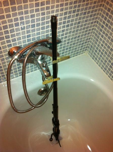 - Colocamos el arma en algún lugar apropiado, la bañera o algún barreño, recipiente grande o similar con la boca del cañón hacia arriba y que no se tambalee ni se caiga.