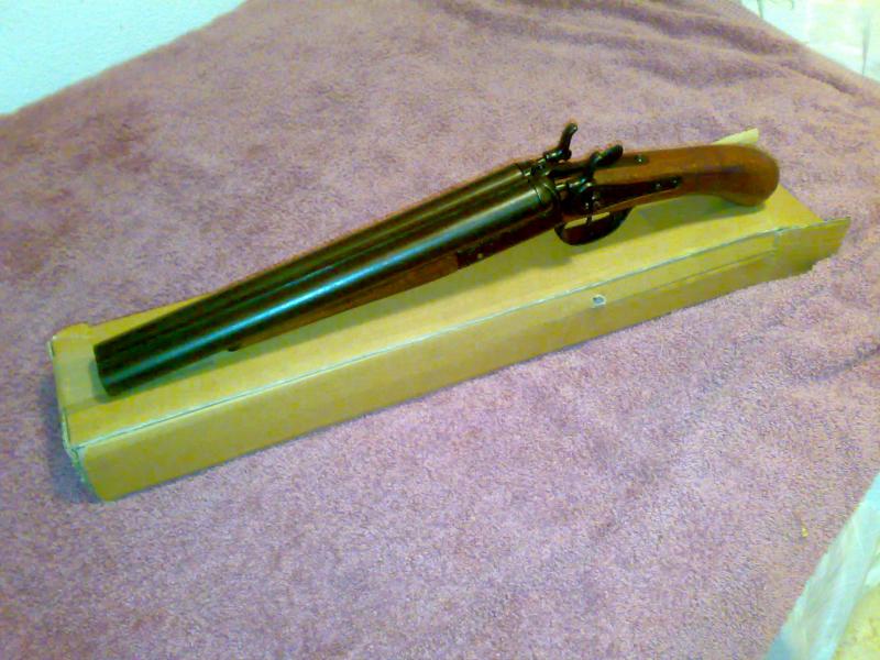 Después se le ha redondeado, teñido y barnizado de nuevo la chimaza y se le ha pavonado el zamak de la boca de fuego para que vuelva a ser negro. En la foto se vé de un tono gris pero es el brillo del aceite.