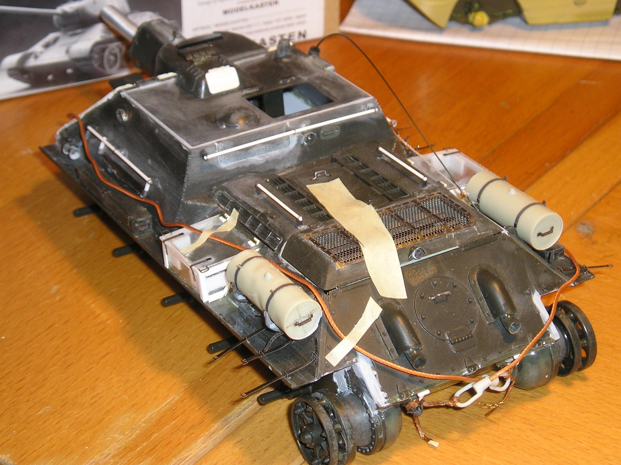 Tengo a casi terminar un tiger I, kubelwaben y moto del afrika korps, pero los tengo dejaos hasta q no termine de ordenar la casa, pero si pongo fotos sera de lejos, hay demasiao nivel aqui