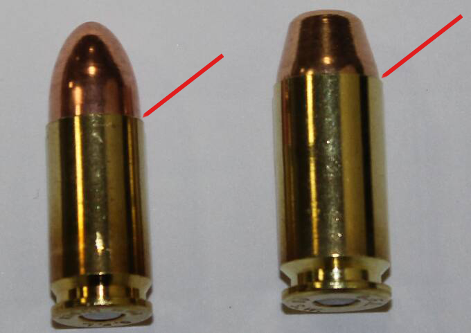 Pero, esos cartuchos de la foto, se colarían por el cañon para adentro, en un arma real del calibre 45......