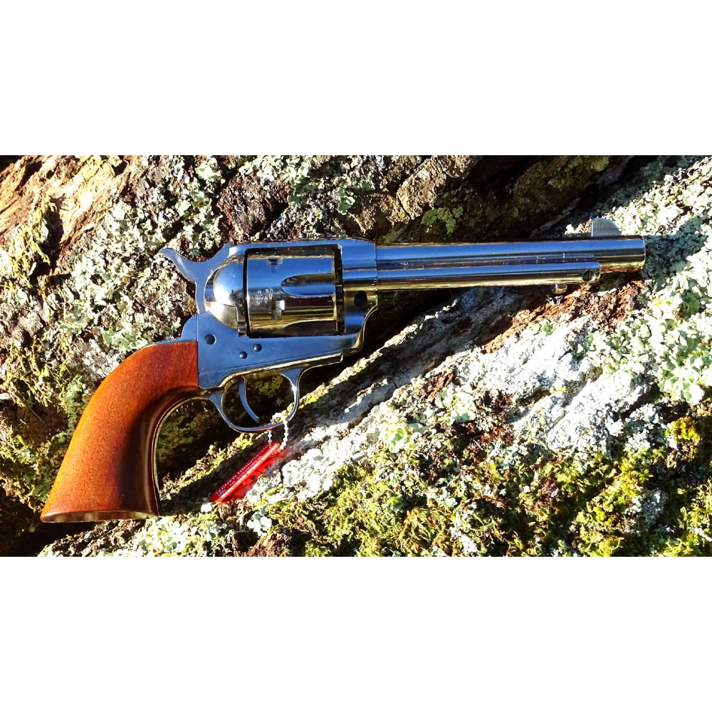 El Uberti no es realmente un revolver de fogueo. Es el revolver de pólvora negra de la misma marca........es decir, todo acero 100% y del bueno......al que le han obstruído el cañón y el tambor lo han taladrado al calibre .380 y con el agujero "escalonado" de forma tal que los alveolos no coincidan exactamente con el cañón para que de nada te sirva cortar el cañón obstruído y soldarle otro.
