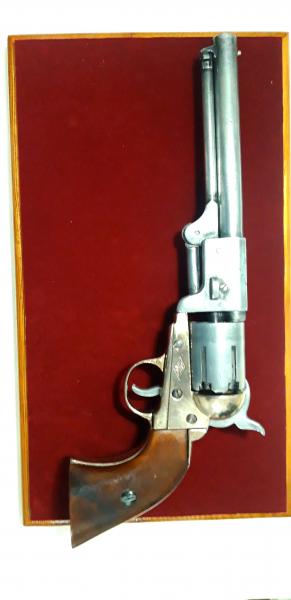 Replica de la marca denix Revólver Confederado, disenado por Griswold & Gunnison, USA 1860. Modificado estéticamente lo que lo hace una pieza única reproduce mecanismos pesos y dimensionesSe entrega con metopa lacada y terciopelo rojo tal como se ve en las fotosPrecio negociable