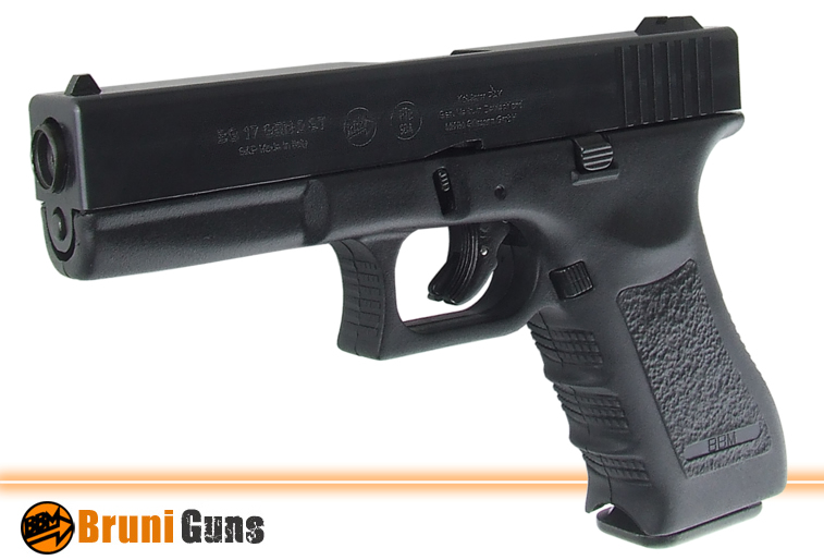 Estoy viendo que en Alemania, desde hace tiempo, se están vendiendo las Bruni BG17 de segunda y tercera generación. Para que nos entendamos todos, las réplicas que fabrica Bruni de la Glock 17. Muchos de los que aquí estamos conocemos perfectamente la primera generación de esta réplica de Bruni y su baja calidad en los materiales empleados en su fabricación, amén de los pésimos acabados del plástico y del arma completa en general. En las siguientes generaciones se ha empleado acero en algunas partes internas, un mejor tratamiento de la superficie, mejoras en el muelle y en el cargador... pero, ¿qué queréis que os diga?, yo sigo viendo a simple vista la misma pistola y con pocas diferencias estéticas con su predecesora la de primera generación. Pero si nos ponemos a mirar precios, es cuando en mi rostro surge un gesto de sorpresa. La Bruni BG17 de segunda generación se vende en Alemania, nada más y nada menos, a un precio de 225 euros. Y la de tercera generación a un precio de 380 euros
