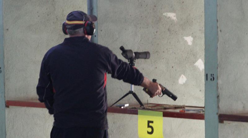 Una pregunta, en una de las fotos hay una femina apoyando la pistola en una especie de gancho y a su lado hay una media luna de alambre sujetando lo que parecen unos tapaojos.