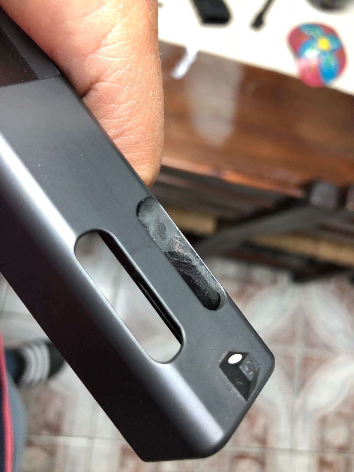 Buenas noches a todos... una consulta, tengo una glock 19 4 generación comprada igual a cero con 3 o 4 cajas tiradas..... mi duda es la siguiente: soy demasiado detallista y al mirarla detenidamente me encuentro con q en la corredera al lado de donde saldrían los gases esta como áspero de los dos lados por decirlo de alguna forma nose si me explico.... mi duda es si eso es normal....