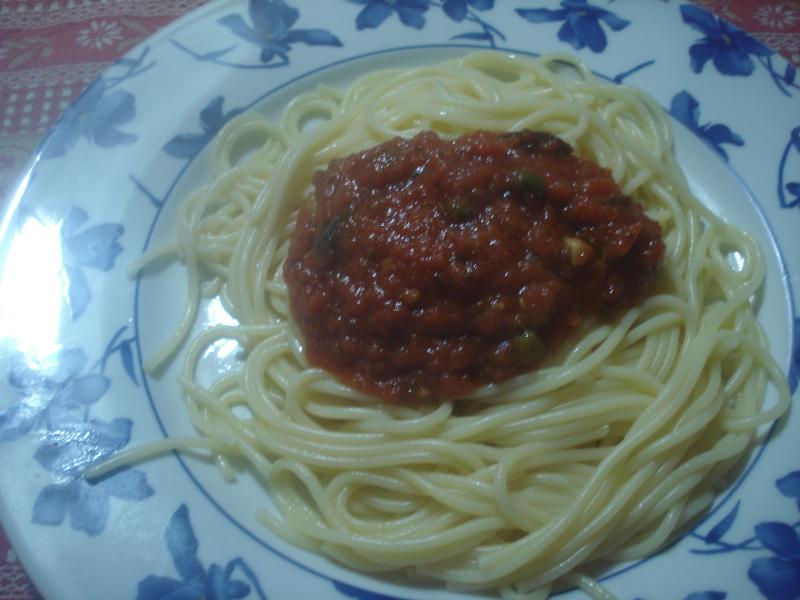 Spaguettis alla putanesca, riquísimos y picantones. :wink: